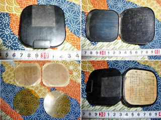 -On the Right: we can see a common civilian filter with instructions and date attached on it. Marked Showa15 (1940)